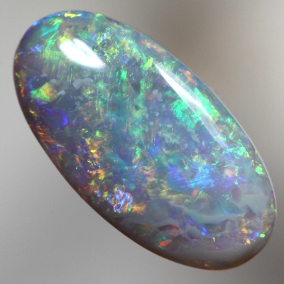 The fire in this opal is of the brightest colours, ranging from orange, yellow, green, a beautiful turquoise and blue. The play of colour moves brilliantly across the opal as it is turned. This ever-changing display of colour makes for an interesting and lively opal.