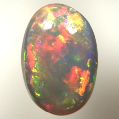 This beautiful opal is absolutely loaded with bright colours. The fire ranges from red and orange to a touch of sparkling green and blue. The red and orange colours are always moving bright in rolling flashes as the opal is turned with sparkles of green and blue playing between the rolling flashes. The colourful show this stone puts on is spectacular to say the very least.